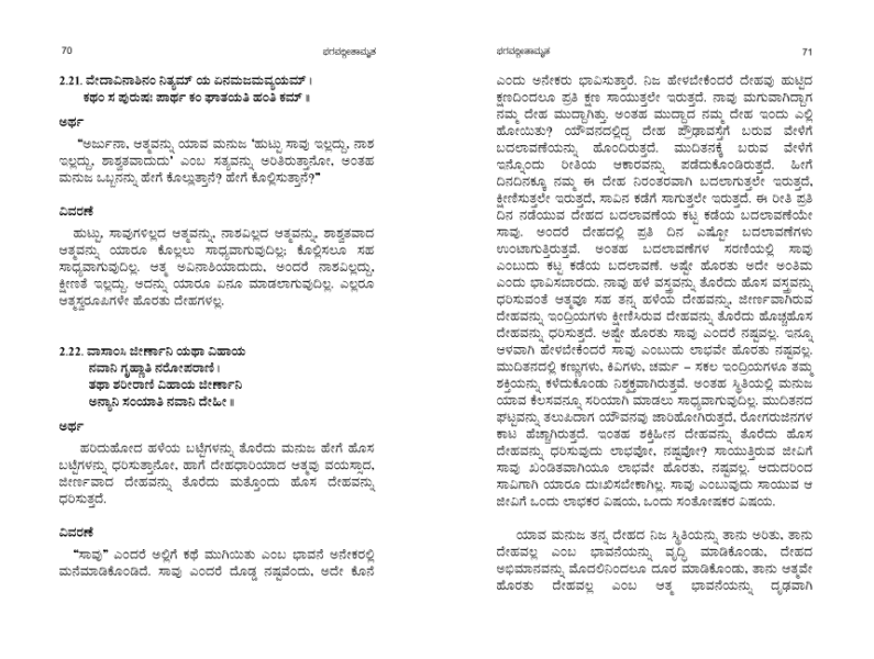 ಭಗವದ್ಗೀತೆಯ ಆಳವಾದ ವಿಚಾರಗಳನ್ನು ಜ್ಞಾನಯೋಗಿ ಅವರು “ಭಗವದ್ಗೀತಾಮೃತ" ಎಂಬ ಈ ಕೃತಿಯಲ್ಲಿ ಅತ್ಯಂತ ಸರಳವಾಗಿ ವಿವರಿಸಿದ್ದಾರೆ. ಶ್ಲೋಕಗಳ ಅರ್ಥವನ್ನು ಮಾತ್ರವಲ್ಲದೆ, ಅದರ ಒಳಗಿನ ನಿಜವಾದ ಸಾರವನ್ನು ವಿಶ್ಲೇಷಿಸಿ ಹೊರತೆಗೆಯುವ ಅವರ ದೃಷ್ಟಿಕೋನವು ಓದುಗರ ಚಿಂತನೆಗೆ ಹೊಸ ದಿಕ್ಕನ್ನು ನೀಡುತ್ತದೆ. ಭಗವದ್ಗೀತಾಮೃತವನ್ನು ಓದುವುದರಿಂದ ಜೀವನದ ಸಮಸ್ಯೆಗಳಿಂದ ತೊಳಲುತ್ತಿರುವ ಮನಸ್ಸಿಗೆ ಶಾಂತಿ ದೊರೆಯುತ್ತದೆ, ಗೊಂದಲಗಳಿಂದ ತತ್ತರಿಸಿದ ಬುದ್ಧಿಗೆ ಸ್ಪಷ್ಟತೆ ದೊರೆಯುತ್ತದೆ. ಈ ಗ್ರಂಥವು ಓದುಗರಲ್ಲಿ ಧೈರ್ಯ, ಸಮತೋಲನ ಹಾಗೂ ಆತ್ಮವಿಶ್ವಾಸವನ್ನು ತುಂಬುತ್ತದೆ; ಕರ್ಮವನ್ನು ಮಾಡುವ ಸರಿಯಾದ ವಿಧಾನವನ್ನು ಕಲಿಸುತ್ತದೆ; ಫಲಾಸಕ್ತಿಯಿಂದ ಹೊರಬಂದು ನಿಜವಾದ ಶಾಂತಿಯನ್ನು ಅನುಭವಿಸುವ ಮಾರ್ಗವನ್ನು ತೋರಿಸುತ್ತದೆ. ಬದುಕಿನ ಏರುಪೇರಿನಲ್ಲಿ ದಾರಿ ತಪ್ಪಿದಾಗ ಕೈಹಿಡಿದು ನಡೆಸುವ ಮೌನ ಮಾರ್ಗದರ್ಶಿಯಂತೆ ಈ ಪುಸ್ತಕ ನಮ್ಮೊಂದಿಗೆ ನಿಲ್ಲುತ್ತದೆ. ಜ್ಞಾನಯೋಗಿ ಅವರು ಬರೆದಿರುವ ಈ "ಭಗವದ್ಗೀತಾಮೃತ"ವು ಪ್ರತಿಯೊಬ್ಬ ಓದುಗರ ಮನದಲ್ಲಿ “ನನ್ನ ಜೀವನವನ್ನು ಒಳಗಿನಿಂದಲೇ ರೂಪಾಂತರಗೊಳಿಸಿದ ಗ್ರಂಥವಿದು” ಎಂಬ ಅನುಭವವನ್ನು ಖಂಡಿತವಾಗಿಯೂ ಮೂಡಿಸುತ್ತದೆ.